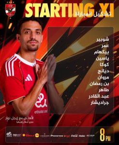 وسيبدأ الدنماركي ياس سوروب (55 عاما) المدير الفني لنادي الأهلي بالتشكيلة الأساسية التالية لمواجهة ضيفه: