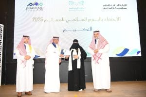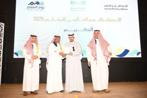 ونوه “بما أولته قيادتنا الرشيدة – أيدها الله – للتعليم من مكانة رفيعة، ورعت المعلّم عناية خاصة؛ تقديرًا لمكانته باعتباره ركيزة أساسية في التنمية، وضمانة حقيقية لتحقيق مستهدفات رؤية المملكة 2030، وتعزيز تنافسية وطننا عالميًا. وإن ما تبذلونه من تفانٍ وإخلاص هو مصدر فخر واعتزاز، يترجمه الواقع إلى أجيال متمكنة تحمل القيم وتفتخر بالهوية وتسعى للإنجاز.
