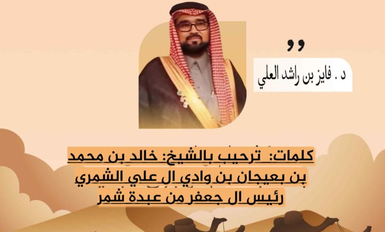 ترحيب بالشيخ: خالد بن محمد بن بعيجان آل علي الشمري..