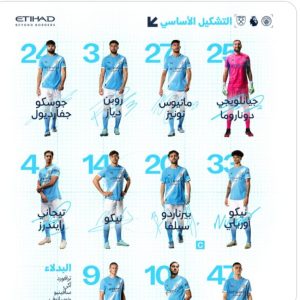 ويحتل فريق مانشستر سيتي المركز الثاني في جدول ترتيب الدوري “البريمير ليغ” برصيد 34 نقطة، متأخرا بفارق نقطتين خلف صاحب الصدار فريق أرسنال.