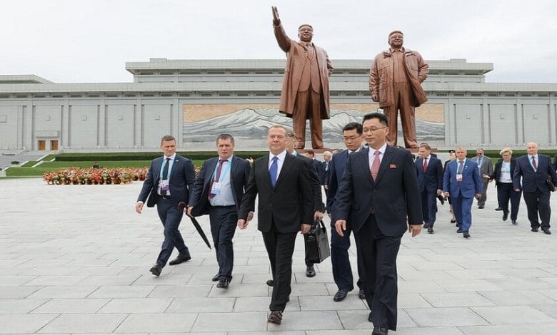 ويزور مدفيديف بيونغ يانغ على رأس وفد من حزب روسيا الموحدة كوريا الشمالية بدعوة من اللجنة المركزية لحزب العمال الكوري، للمشاركة في احتفالات الذكرى الثمانين لتأسيس الحزب غدا العاشر من أكتوبر.