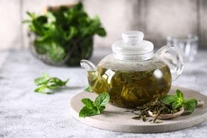 الشاي الأخضر غني بالكاتشينات المضادة للالتهابات مثل EGCG، بينما تُساهم عشبة الليمون بالزيوت الأساسية المعروفة بتقليل الالتهاب والتورم.