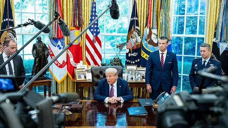 وقّع الرئيس الأمريكي دونالد ترامب، أمرًا تنفيذيًا في المكتب البيضاوي أمس الجمعة، لاعادة تسمية وزارة الدفاع بوزارة الحر* ب، وهو الاسم الذي استُخدم قبل الحر* ب العالمية الثانية، ويهدف ترامب من خلال هذا القرار إلى إرسال إشارة قوية حول تغيير نهج السياسة العسكرية الأمريكية، معتبرًا أن الاسم الحالي يعكس ضعفًا و”تسييسًا” أدى إلى خوض حروب دون تحقيق انتصارات حاسمة.