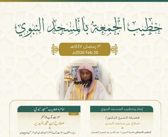 فيما يخطب ويؤم المصلين في المسجد النبوي فضيلة الشيخ الدكتور صلاح البدير