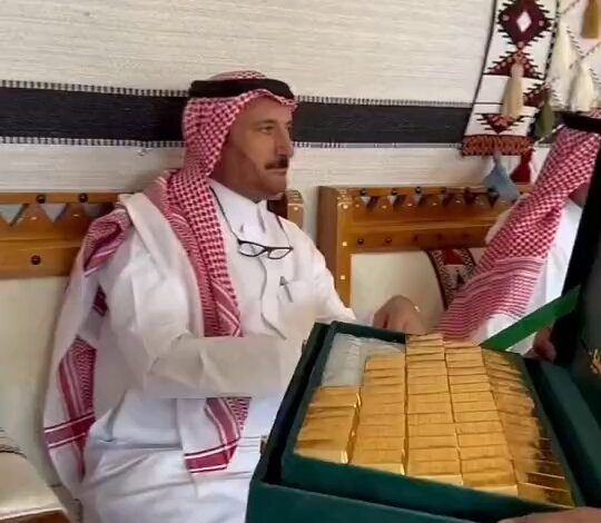 نشر موقع التايمز ناو، مقطع فيديو، يظهر أجواء حفل زفاف فاخر يجلس خلاله عدد من الرجال بملابس رسمية بينما يتحرك شخص حاملًا صندوقًا مليئًا بسبائك ذهبية لامعة، هدية مقدمة من شقيق العروس إلى عائلة العريس.