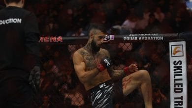 مقاتل يكتسح متحديه بضربة عنيفة بالركبة قبل خنقه