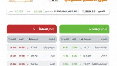مؤشر سوق الأسهم السعودية يغلق منخفضًا متابعة/سناء منذر انخفض مؤشر الأسهم السعودية الرئيس اليوم بمقدار 57.99 نقطة، ليصل إلى مستوى…